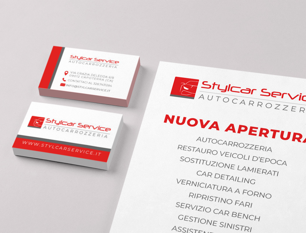 La Stylcar Service è un’autocarrozzeria con tanti anni di esperienza alle spalle. In seguito allo spostamento ed ampliamento dell’officina, abbiamo seguito il committente nella creazione del nuovo logo e dell’immagine coordinata. Sono stati realizzati i biglietti da visita, volantini promozionali e una targa posizionata all’entrata che descrive i vari servizi. Nel sito web spazio al video promozionale di presentazione e alle bellissime foto dei lavori eseguiti dall’autocarrozzeria.